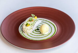 Saint Honoré au citron de Menton, glaçage bergamote, Gressin et crème glacée au thym