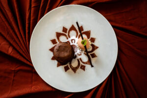 Le cabillaud aux segments de pamplemousse flambés, tagliatelles au kumbawa, coulis d’épinards aux herbes fraiches